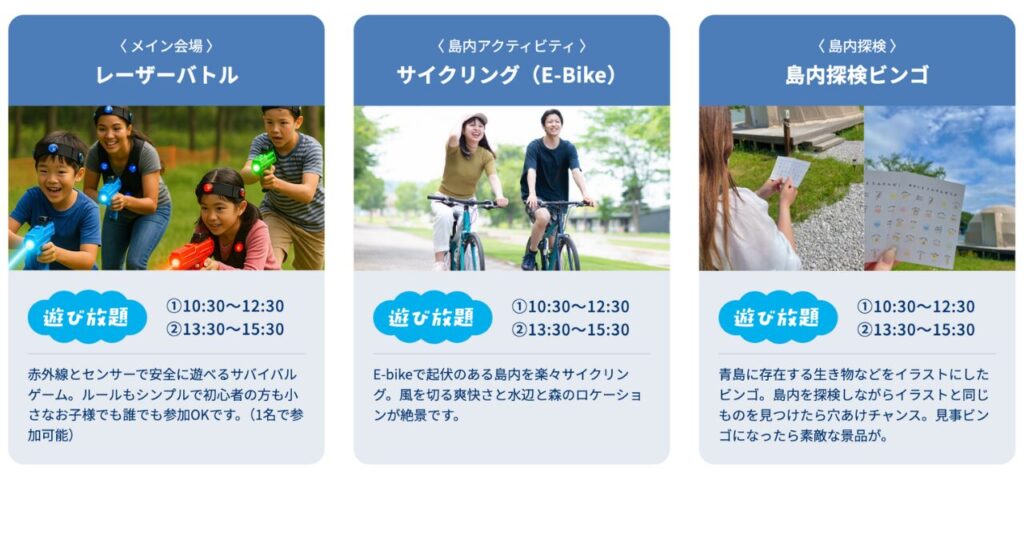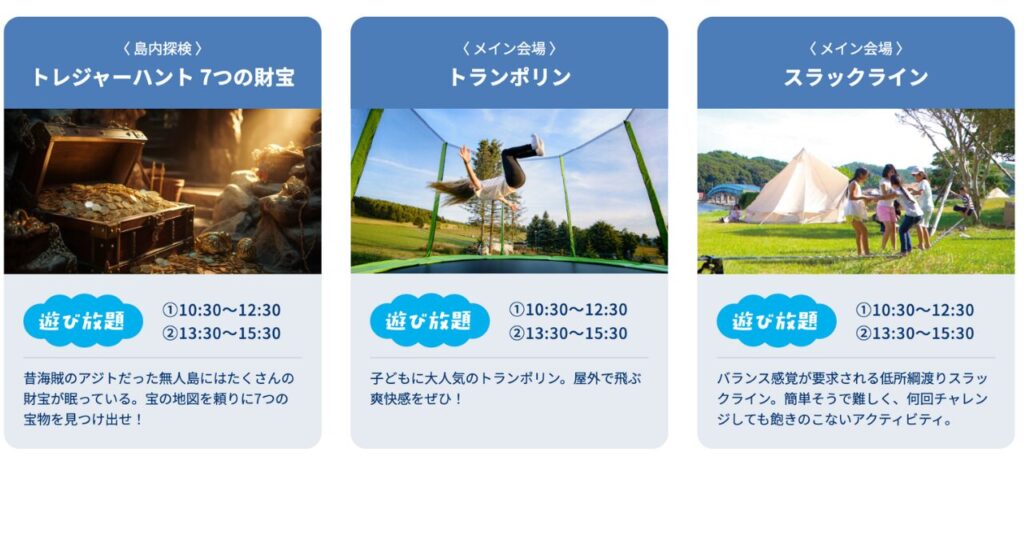2時間たっぷり遊び放題のアクティビティに加え、フードや縁日コーナーも登場!