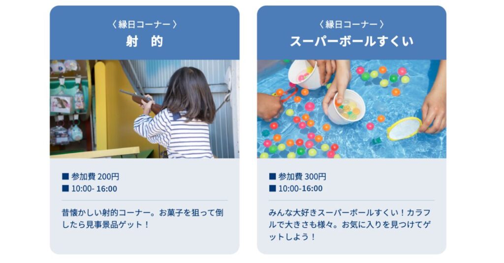 | 内容 | アクティビティ体験・縁日・飲食ブースなど |