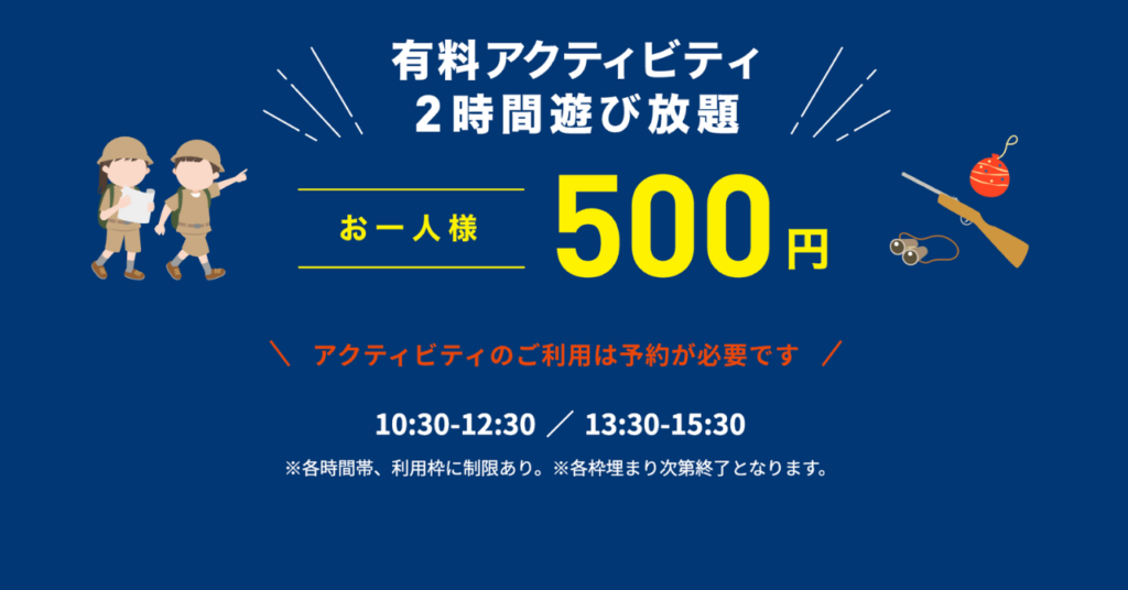 【事前予約制】2時間たっぷり遊べるアクティビティ