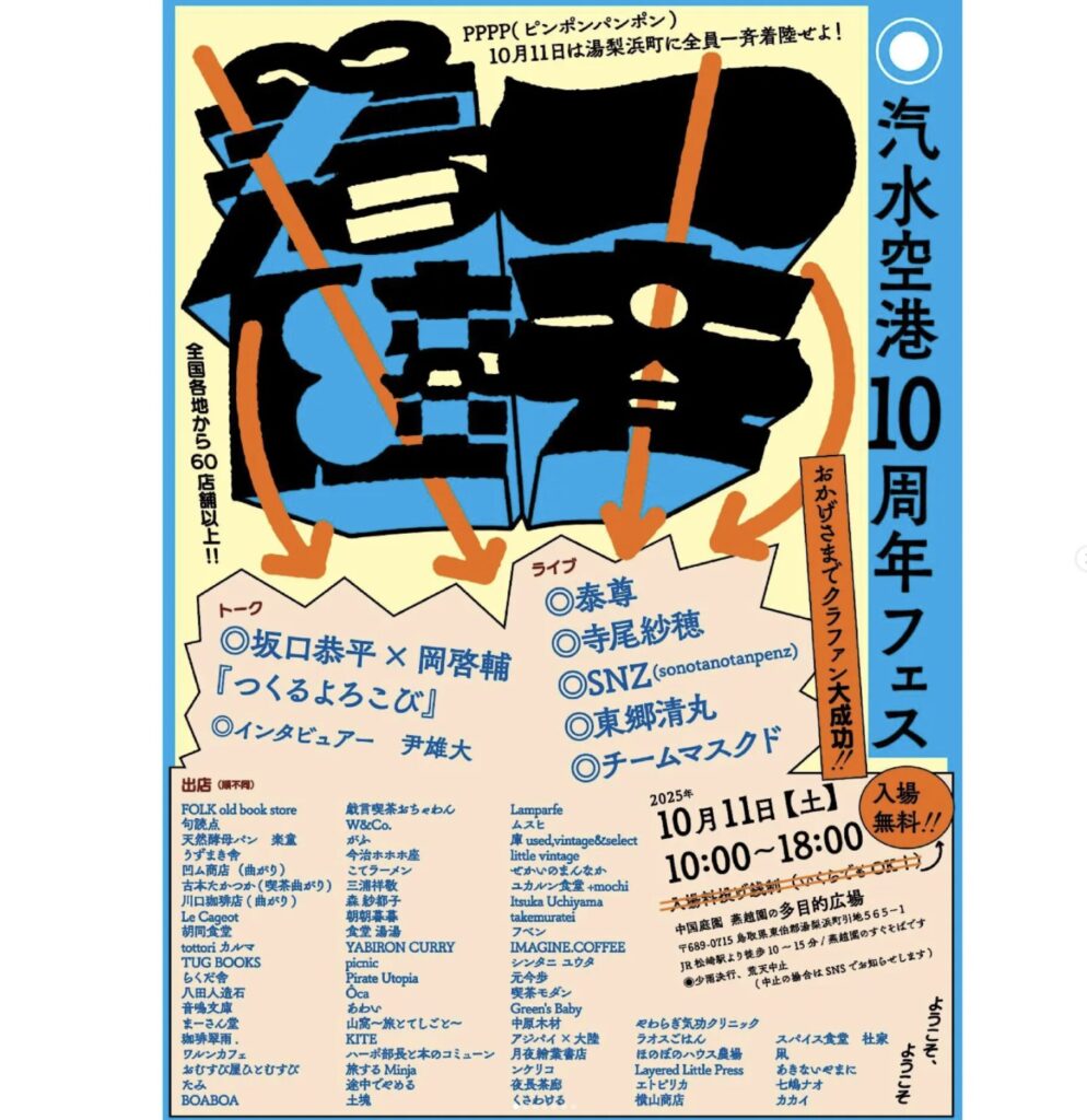 県内外各地のアーティスト・飲食・物販など、約65店舗が汽水空港のお祝いに駆けつけます!