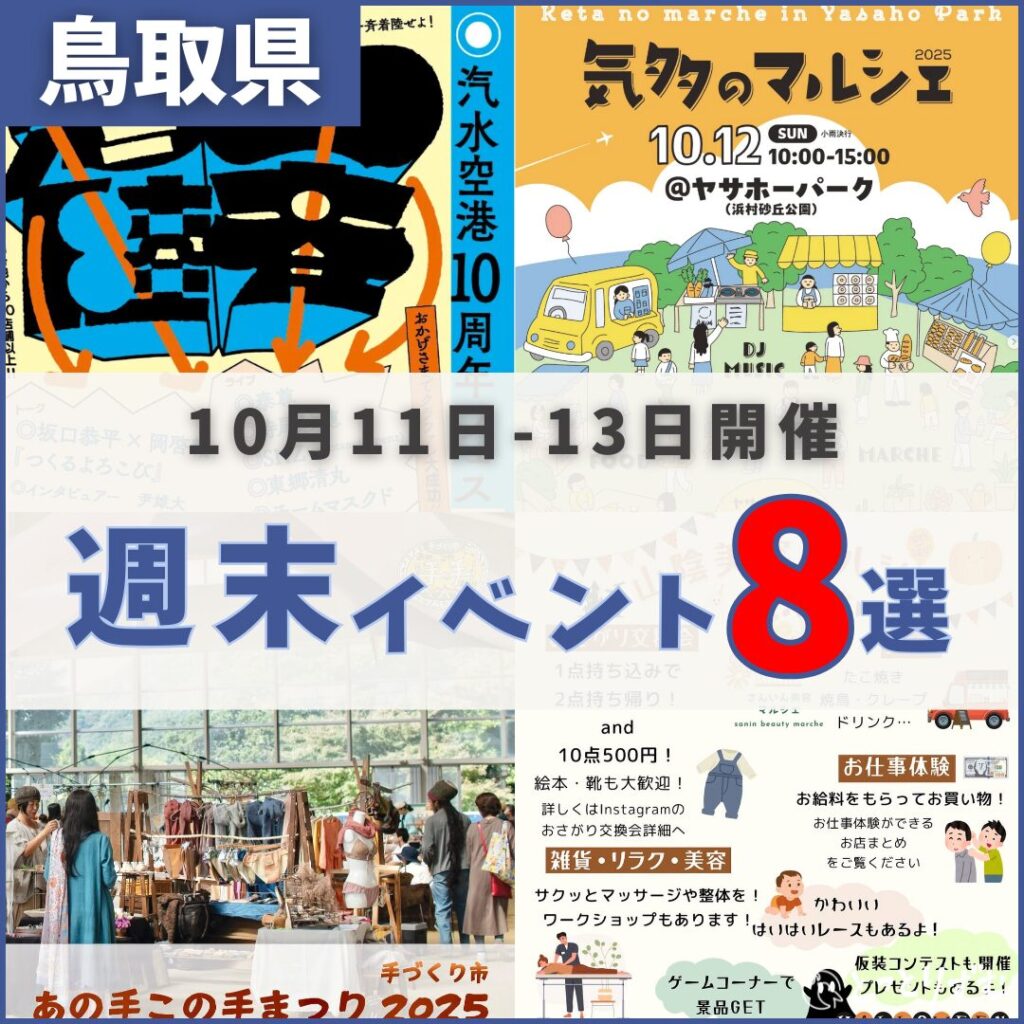 2025年10月11日(土)〜13日(月・祝)に開催される「鳥取イベントスケジュール」をまとめました。
