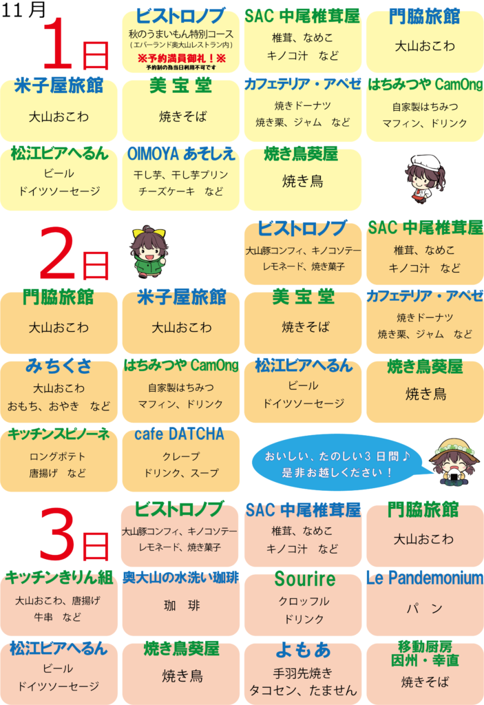 2025年11月1日(土)〜3日(月・祝)に開催される「鳥取イベントスケジュール」をまとめました。
