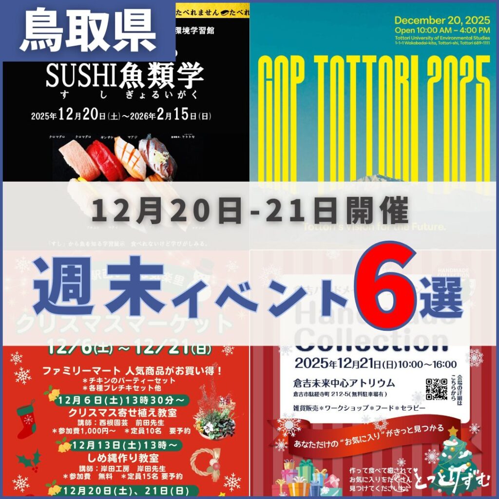 2025年12月20日(土)〜21日(日)に開催される「鳥取イベントスケジュール」をまとめました。