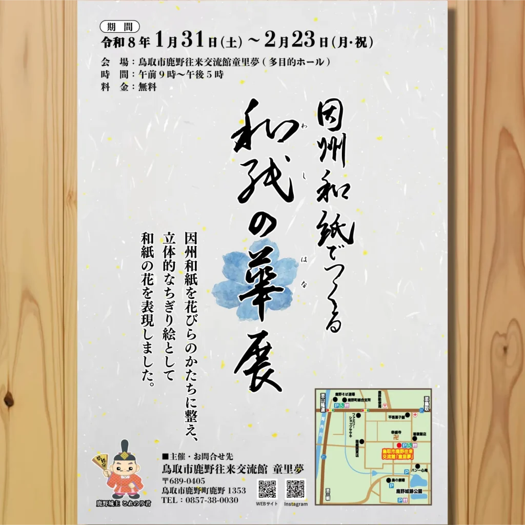 「因州和紙でつくる 和紙の華展」が、鳥取市鹿野往来交流館 童里夢で開催されます。