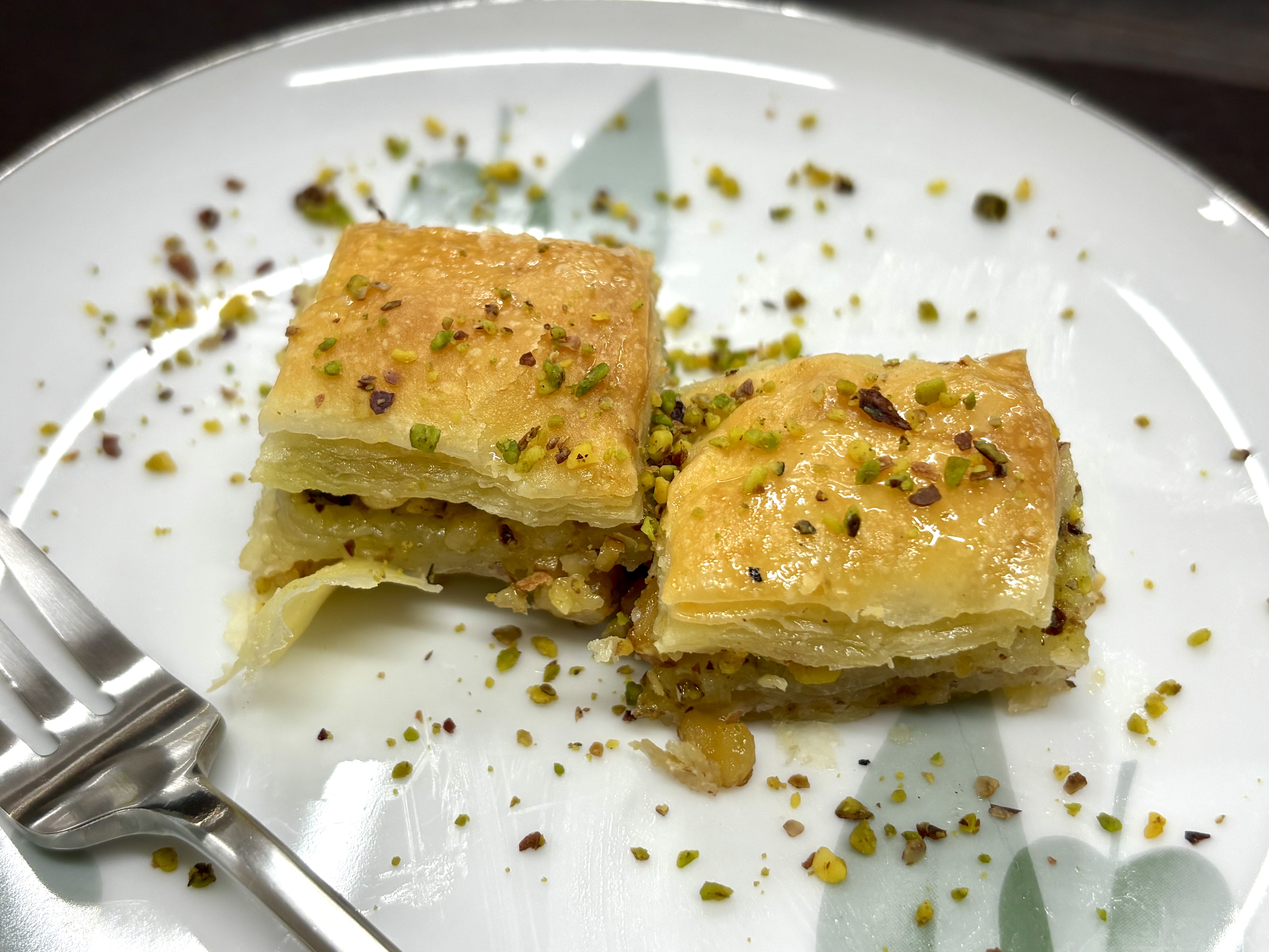 「バクラヴァ」は、薄いパイ生地にピスタチオやクルミなどのナッツを挟んで焼き上げ、シロップやはちみつをたっぷり染み込ませた伝統菓子です。
