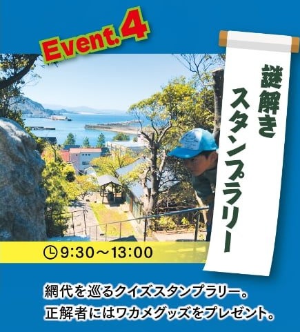 ワカ名探偵になりきって、網代の町を巡るクイズスタンプラリーに挑戦しましょう!見事正解した方には、嬉しいワカメグッズのプレゼントも用意されています。