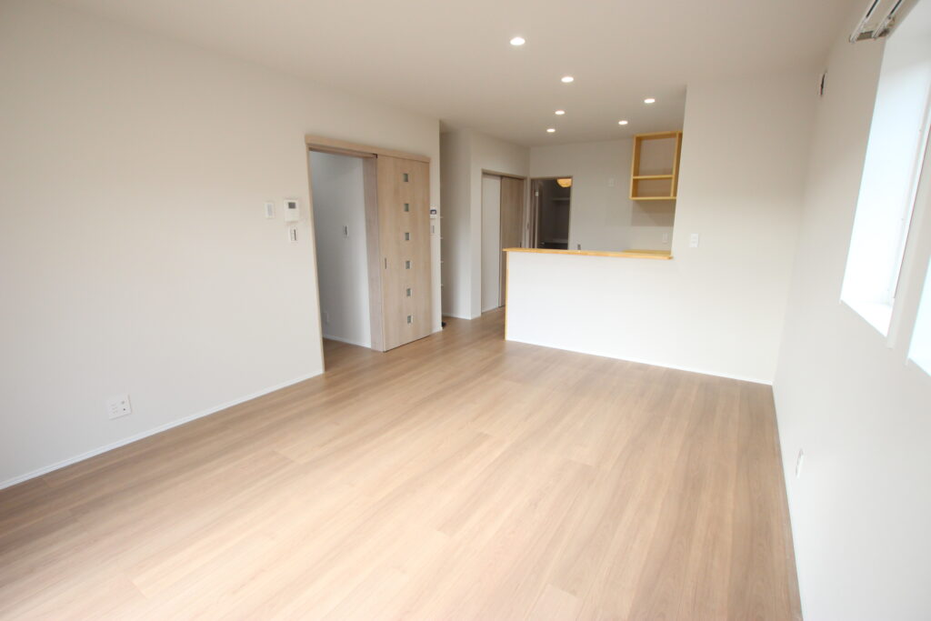 内装はナチュラルでやさしいトーンを基調に、素材の温もりを感じられる仕上がりです。どんな家具やインテリアにも合わせやすく、時間が経っても飽きのこないデザインが魅力です。